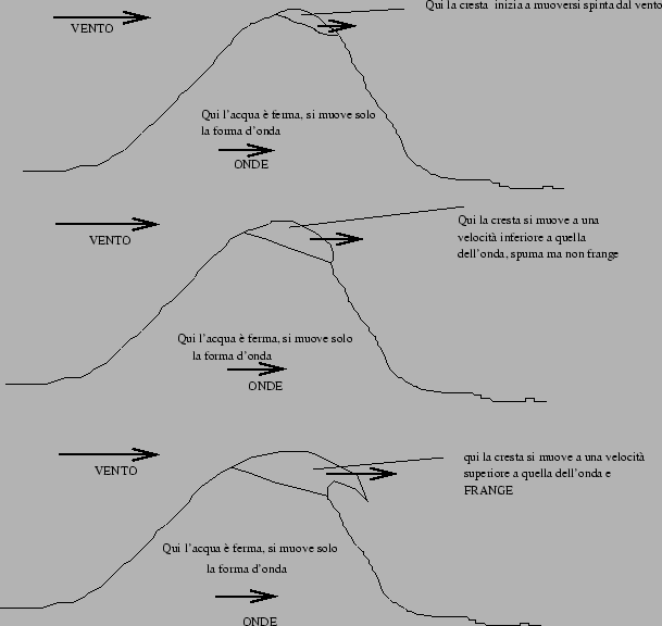 dell'onda, la cresta produce schiuma ma non cade in avanti, viene